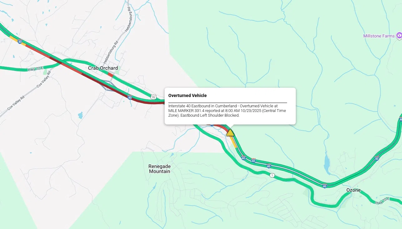 An Iowa truck driver was injured Thursday morning when his truck rolled over on I-40 east in Cumberland County between Crab Orchard and Ozone. TDOT Smartway reported the accident around 8am near the 331 eastbound mile marker. According to the THP, 62-year-old Ernest Larson was driving eastbound when he ran off the left side of the road. He overcorrected and his 2019 Freightliner rolled over on its left side. The THP did not state the severity of his injuries. No charges are pending. The wreck snarled traffic for several hours in the area.