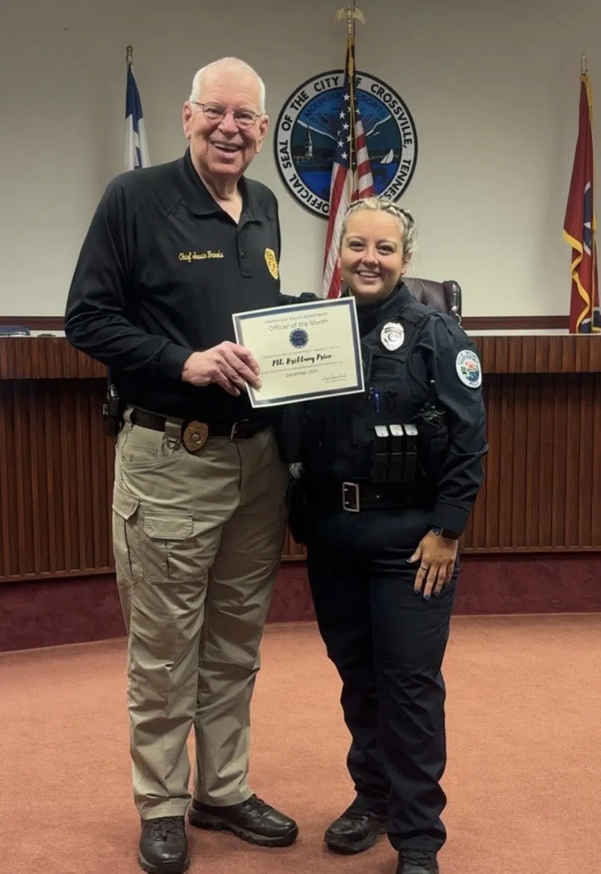 The Crossville City Police Department has recognized Officer Brittany Price as  Officer of the Month for both December and January.  The Department says this back-to-back recognition reflects Officer Price’s outstanding work ethic and dedication to our community. (Photo courtesy Crossville Police Department)